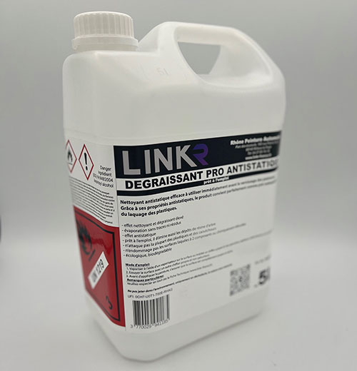 LinkR® Dégraissant PRO Antistatique est un nettoyant à base d’alcool pour le nettoyage et le dégraissage des surfaces avant et après le laquage.